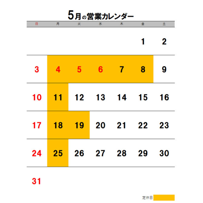 日頃は、ルノー岡崎をご愛顧いただき誠にありがとうございます。4月・5月の営業日については以下とさせていただきます。